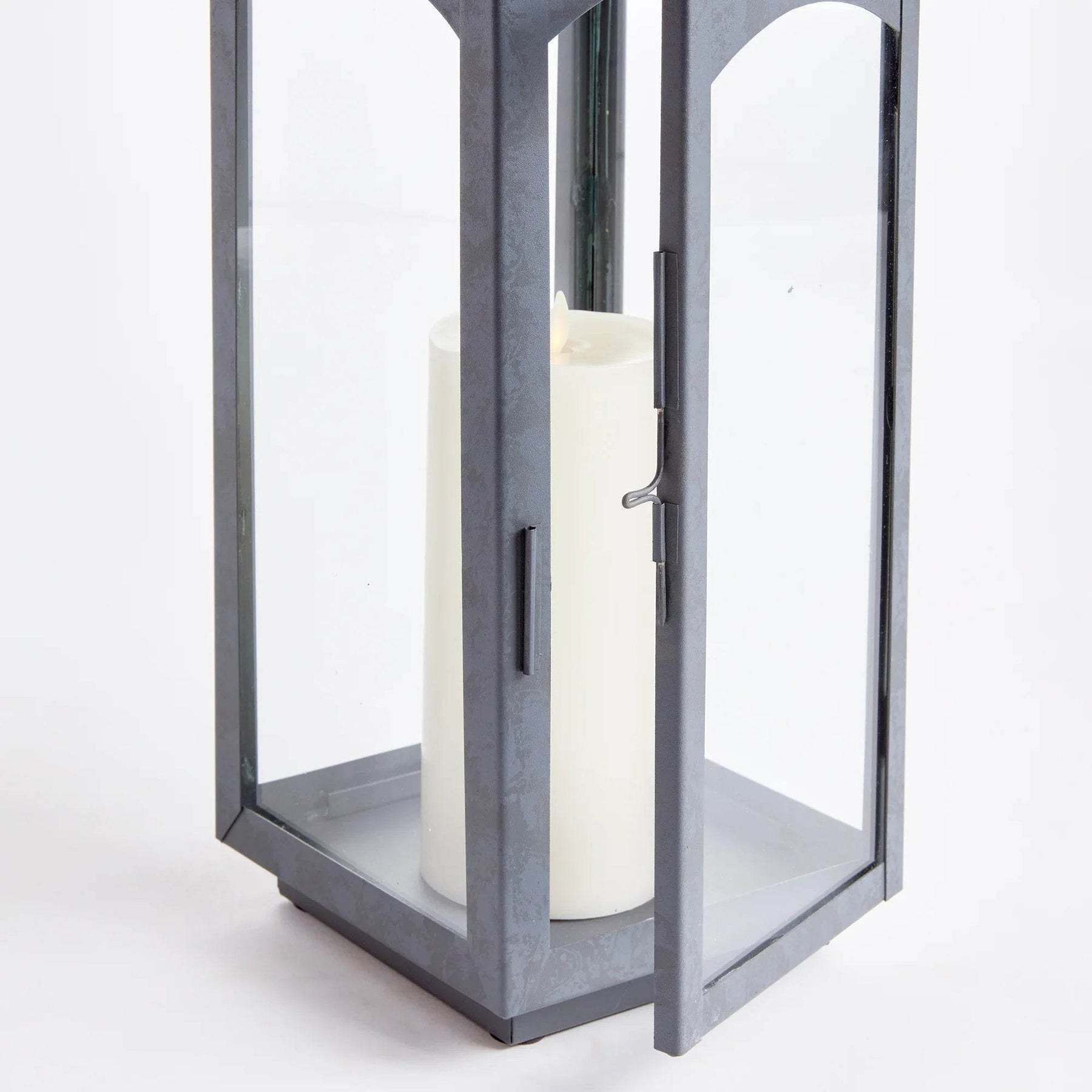 This lantern embodies Transitional restraint—crisp geometry softened by gentle arches—so it blends seamlessly whether your setting leans coastal breezy or farmhouse warm. The soft gray reads like aged zinc, adding quiet contrast against natural woods and pale stone.
