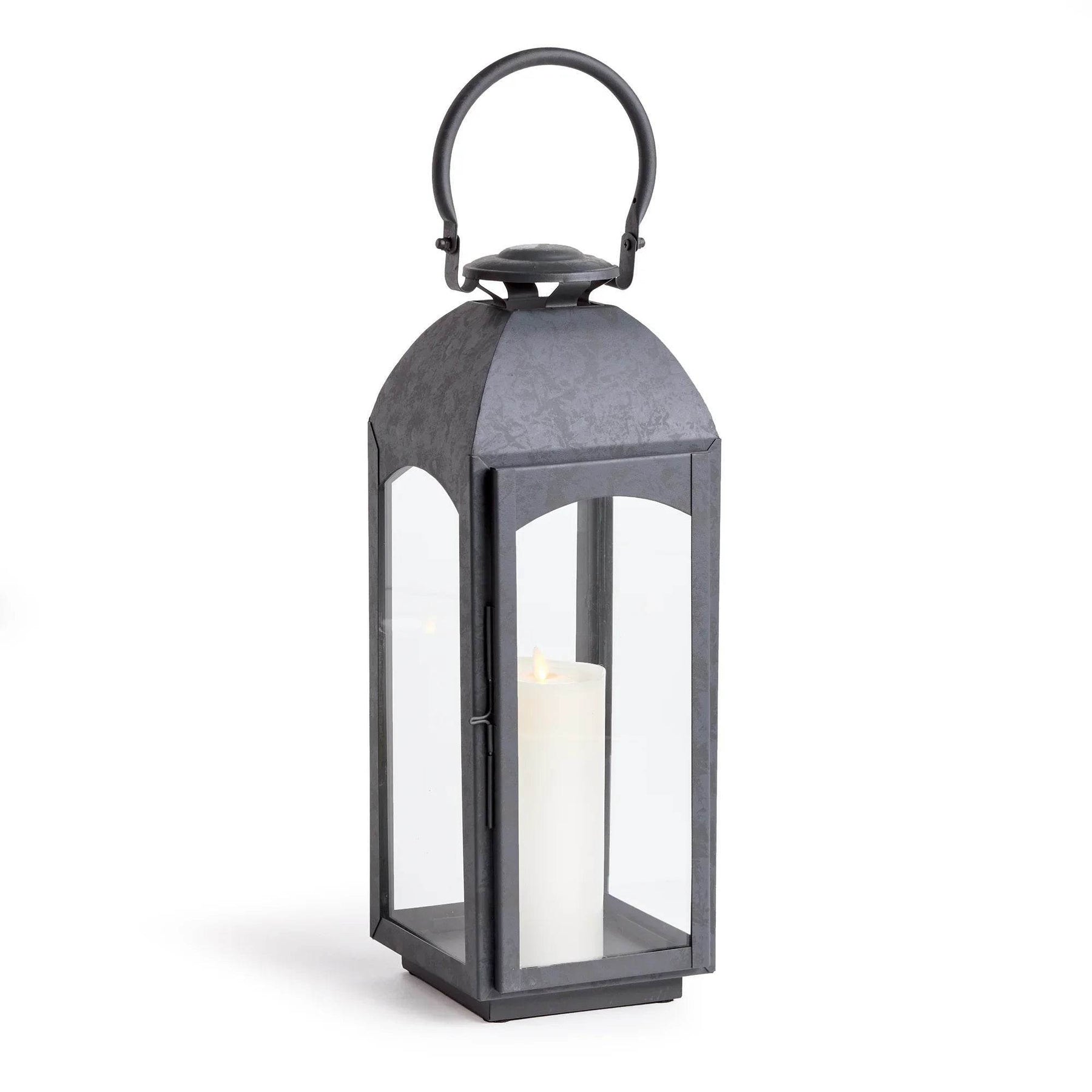 Transitional Gray Outdoor Lantern with Glass - Large, 20.5"