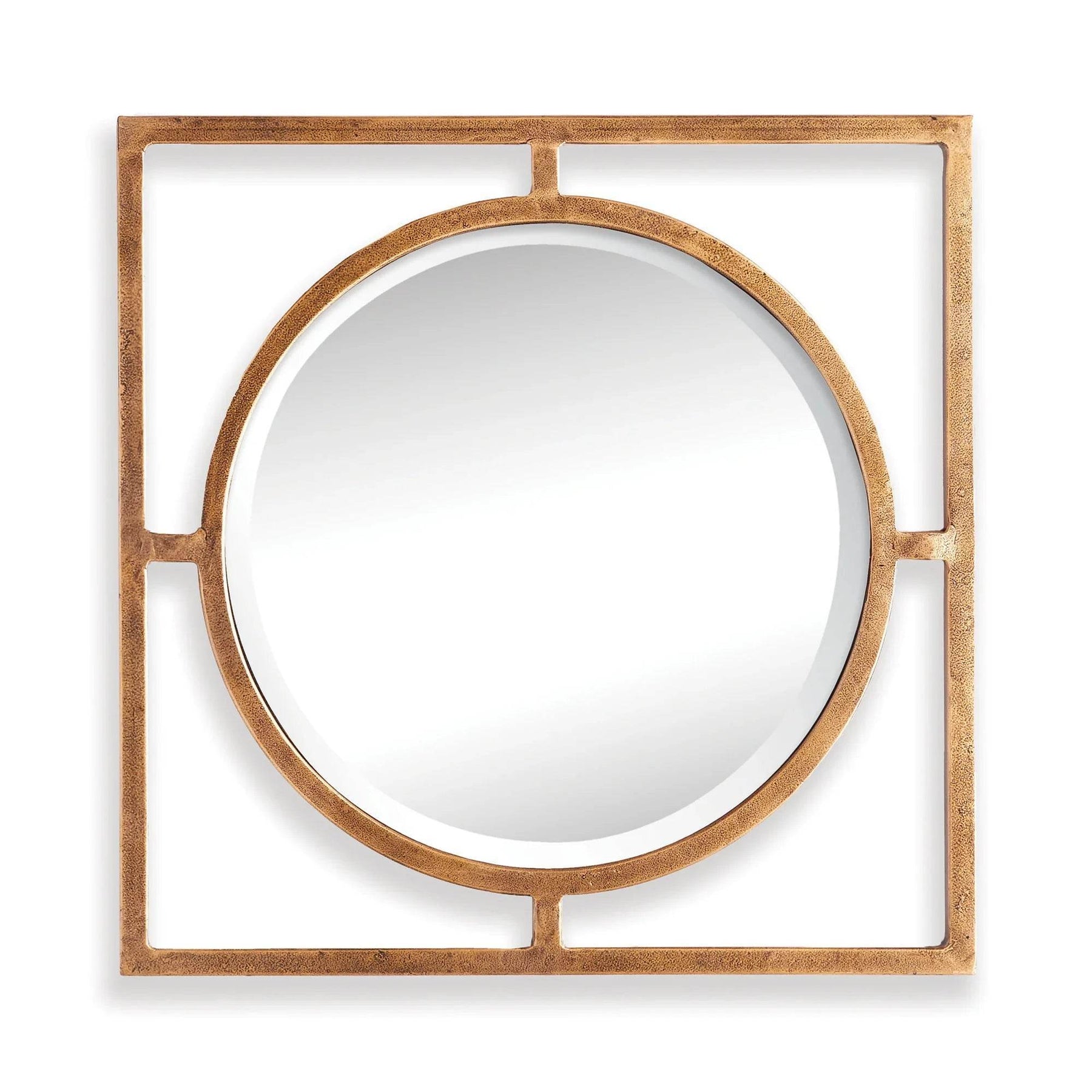 Bring timeless structure and reflective light to your interiors with this antique gold wall mirror—an 18" square iron frame with a circular inset that balances geometry and tradition.