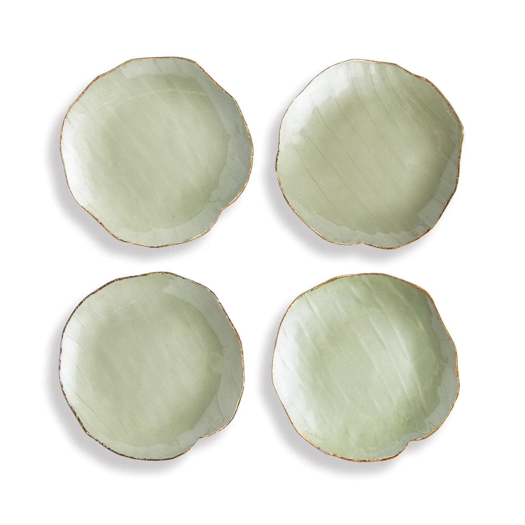 This charming set of hand-painted decorative trays are inspired by nature. With a gold edge detail, and muted green hues, they add a pop of colorful character to kitchen island, side table or ottoman.