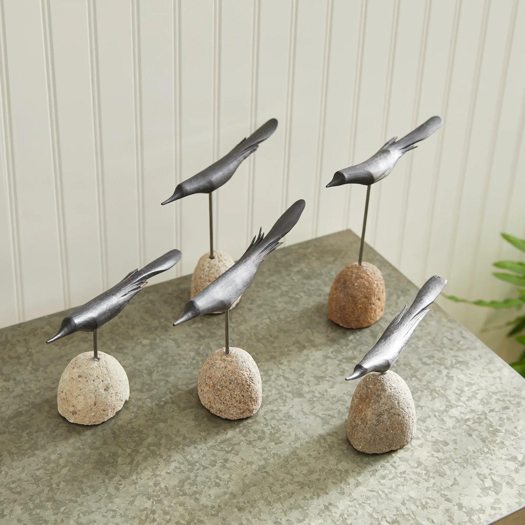 Five striking black birds in a contemporary composition, each piece handcrafted with rustic charm and artistic intention. A sophisticated accent for walls seeking understated elegance and organic character.